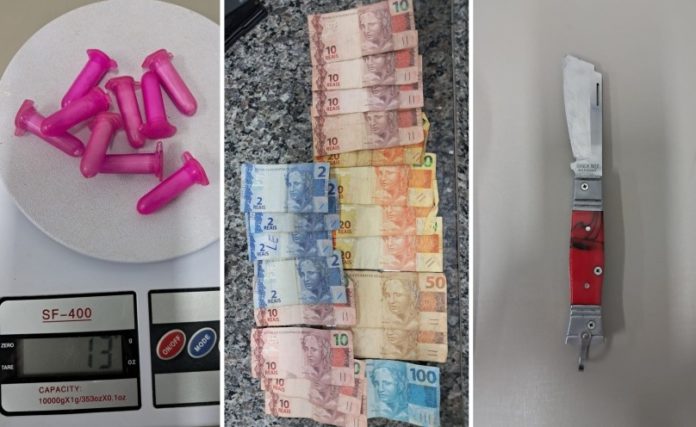 Com o abordado, os policiais encontraram 9 eppendorfs de cocaína, pesando 13 gramas, além de R$ 368,00 em notas variadas.