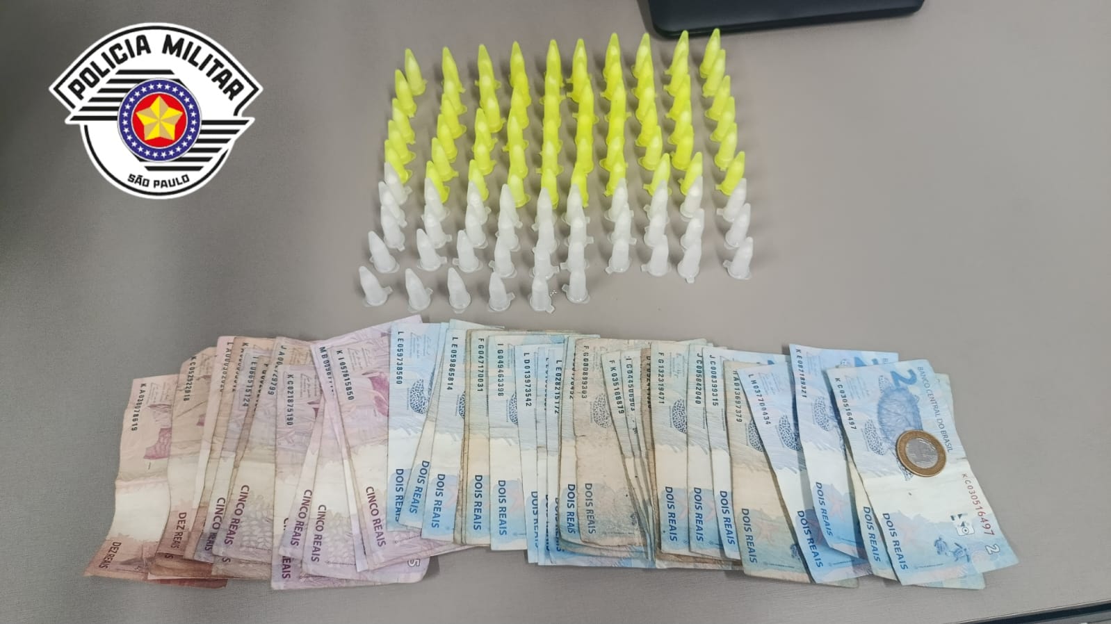 O adolescente tentou correr para uma área de mata, mas foi abordado poucos metros depois, ainda nas imediações. Com ele, os policiais encontraram uma sacola plástica contendo: 96 ependorfs com cocaína; R$ 179,00 em dinheiro; 1 aparelho celular da marca Samsung.