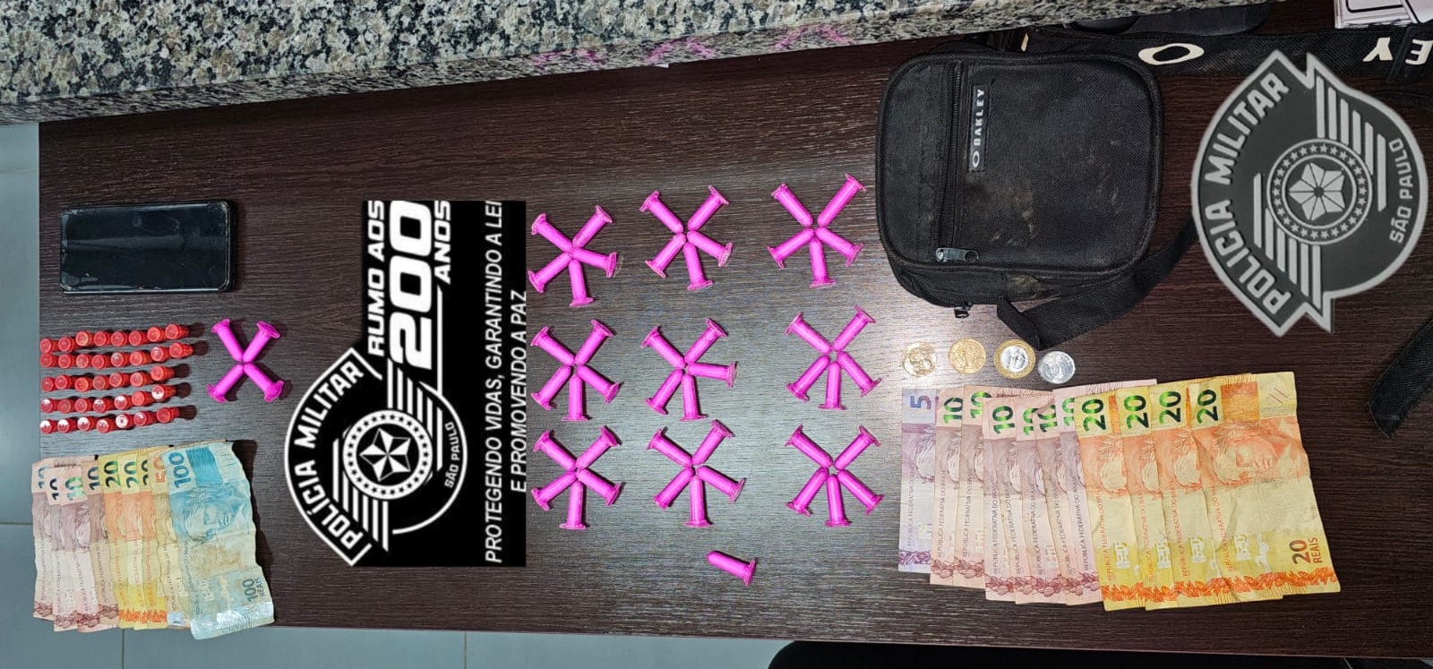 Com um dos adolescentes, de 15 anos, foram encontrados 4 frascos de cocaína, 37 pedras de crack e R$ 250. Já com o segundo, também de 15 anos, os policiais localizaram uma pochete contendo 46 frascos de cocaína e R$ 157, além de um celular Samsung.