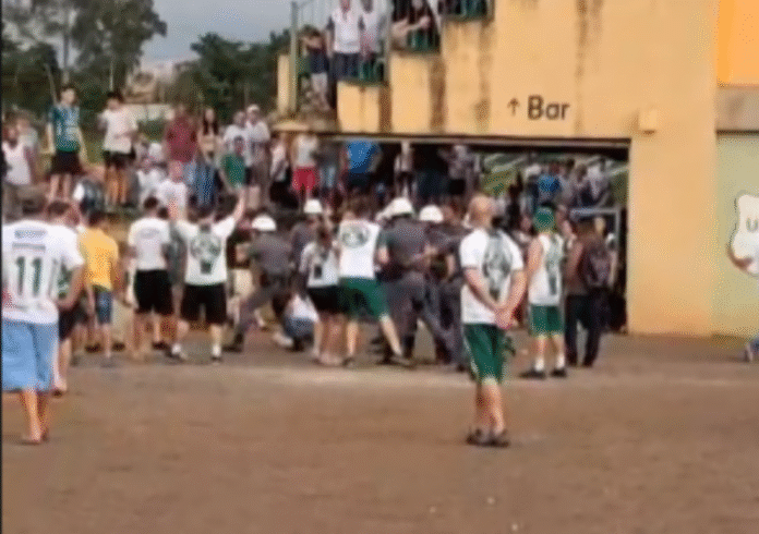 Por motivos que ainda serão apurados, uma briga evoluiu para vias de fato envolvendo integrantes da torcida organizada do União São João e membros da diretoria do Rio Claro, dentro das dependências do estádio.
