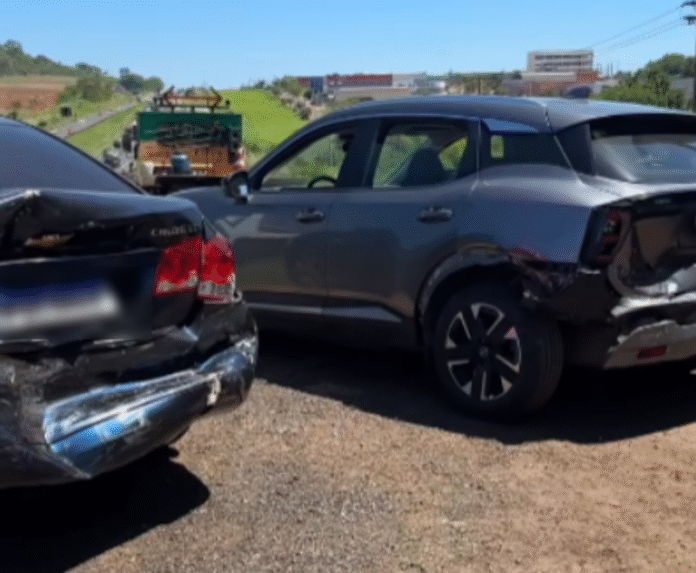 De acordo com as informações, tudo começou quando um automóvel apresentou pane mecânica e ficou imobilizado sobre a faixa de rolamento. Na sequência, outros cinco veículos que trafegavam pelo trecho acabaram se envolvendo em colisões sucessivas.