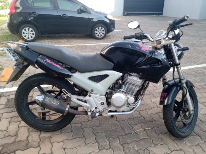 Durante patrulhamento, os policiais avistaram o condutor de uma Honda Twister com o emplacamento dobrado para cima, impossibilitando a visualização. Ao receber ordem de parada por sinais sonoros e luminosos, o suspeito desobedeceu e iniciou fuga em alta velocidade.