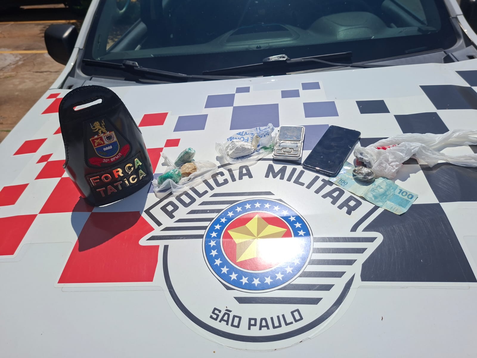 Durante a ocorrência, foram apreendidas porções de crack, cocaína e maconha, além de uma balança de precisão, R$ 100 em dinheiro e um celular. As drogas foram localizadas tanto com o investigado quanto em sua residência.
