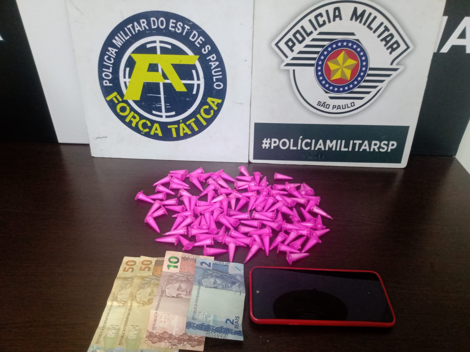 Um homem foi preso em flagrante por tráfico de drogas na noite de sexta-feira (12), no Jardim Saulo, em Leme (SP). A ocorrência foi registrada pela equipe de Força Tática durante patrulhamento pelo bairro.