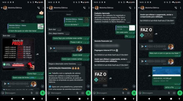 Segundo a vítima, os golpistas oferecem valores entre R$ 2 mil e R$ 20 mil, mas exigem o pagamento antecipado de taxas que variam de R$ 390 a R$ 2.100. Após o envio do dinheiro, os criminosos desaparecem, apagam mensagens ou bloqueiam o contato.