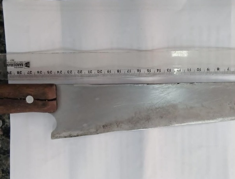 Segundo relato da mulher, o agressor teria a empurrado e feito ameaças utilizando uma faca de aproximadamente 45 centímetros, causando grande temor.