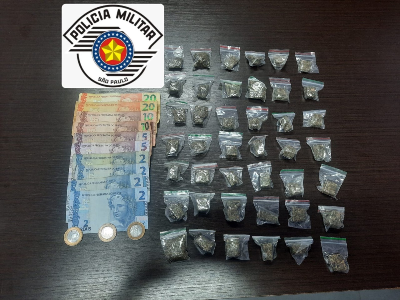 De acordo com a Polícia Militar, ele demonstrou nervosismo ao ver a viatura e tentou esconder algo dentro de uma pochete. Na abordagem, foram encontradas 42 porções de maconha e R$ 81,00 em dinheiro.