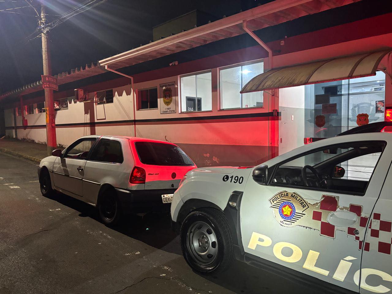 A abordagem ocorreu por volta das 3h, após a equipe suspeitar de um VW Gol com vidros totalmente lacrados. Em vistoria, os policiais constataram divergência de placa, numeração do motor e chassi raspadas e irregularidades nas etiquetas de identificação.