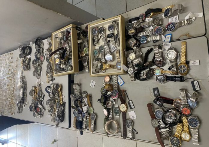Durante a abordagem, foram apreendidas duas mochilas contendo 145 relógios, além de aproximadamente 2,669 quilos de joias e outros itens. As mercadorias estão avaliadas em cerca de R$ 800 mil.