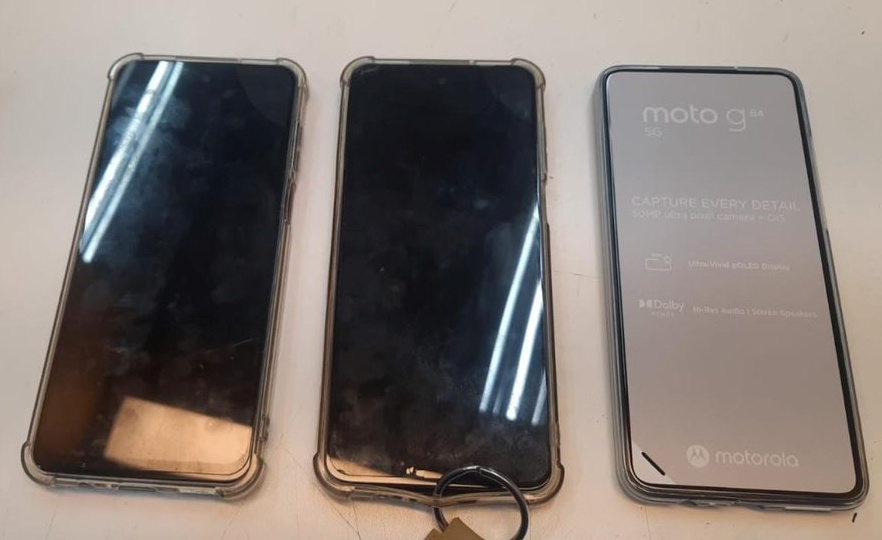Na busca pessoal, os militares encontraram em seu bolso um aparelho celular pertencente ao estabelecimento. Além disso, outros dois celulares já estavam separados sobre o balcão, prontos para serem levados.