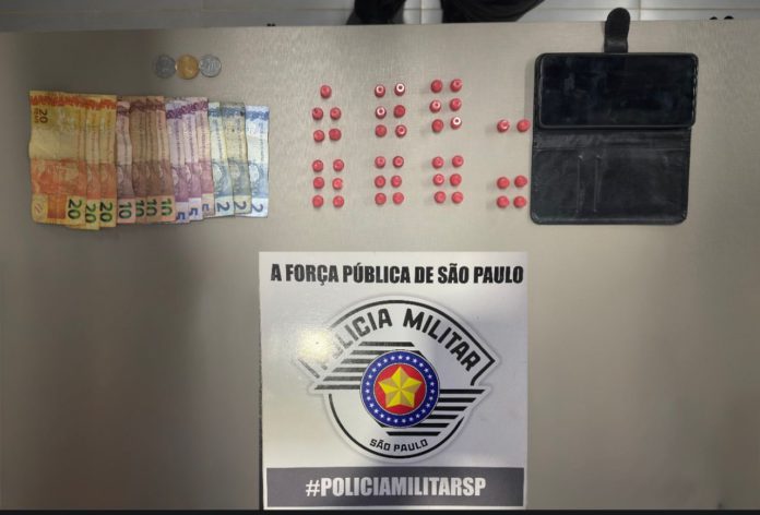 A droga totalizou 0,021 gramas de entorpecente, segundo a PM.
