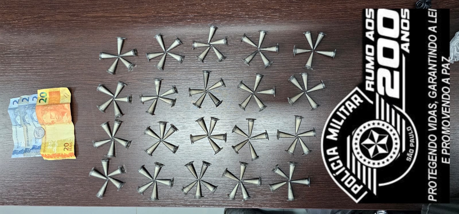 Com ele, foram apreendidos: 100 eppendorfs de cocaína (100g) e R$ 26,50 em dinheiro.