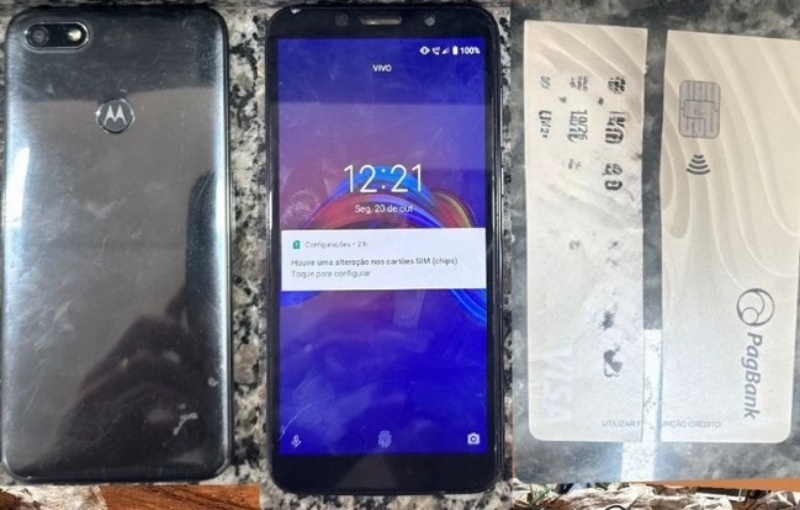 Durante o atendimento de uma ocorrência de descumprimento de medida protetiva, a Polícia Militar recebeu informações de que o suspeito estava com produtos de origem duvidosa. Na abordagem, os policiais encontraram uma bicicleta, um celular e um cartão bancário danificado.