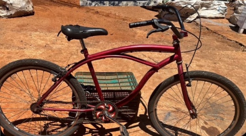 Durante o atendimento de uma ocorrência de descumprimento de medida protetiva, a Polícia Militar recebeu informações de que o suspeito estava com produtos de origem duvidosa. Na abordagem, os policiais encontraram uma bicicleta, um celular e um cartão bancário danificado.