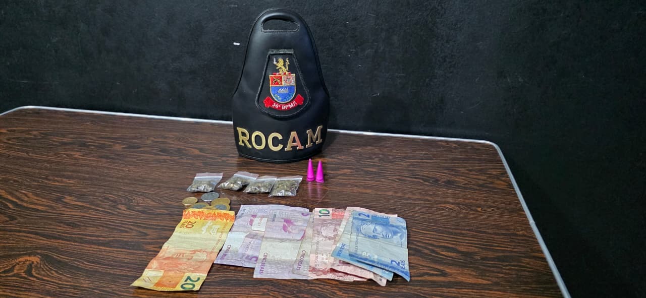Com o envolvido, foram encontrados dois eppendorfs de cocaína, quatro porções de maconha e R$ 67,85 em dinheiro. Em diligência complementar, outras porções de entorpecentes foram localizadas nas imediações.