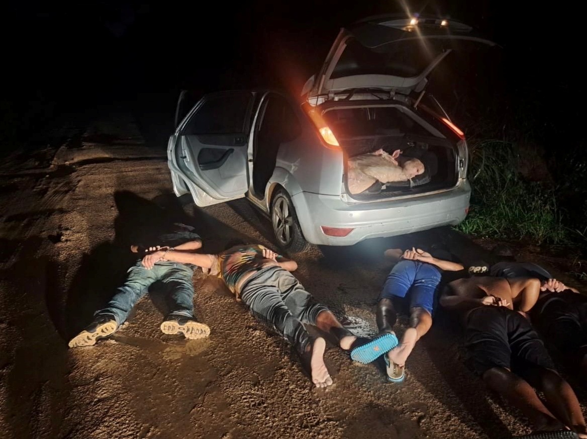 Durante a ação, em determinado ponto da área rural, os agentes abordaram um veículo em movimento. Na revista, foram encontrados cinco porcos no porta-malas do automóvel, caracterizando o flagrante.