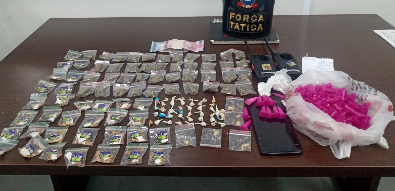 Na revista pessoal, foram encontrados 11 eppendorfs contendo cocaína, R$ 7,00 em dinheiro e um aparelho celular. Questionado, o adolescente confessou que estava traficando drogas no local e informou que havia mais entorpecentes escondidos em sua residência, sem o conhecimento dos familiares.