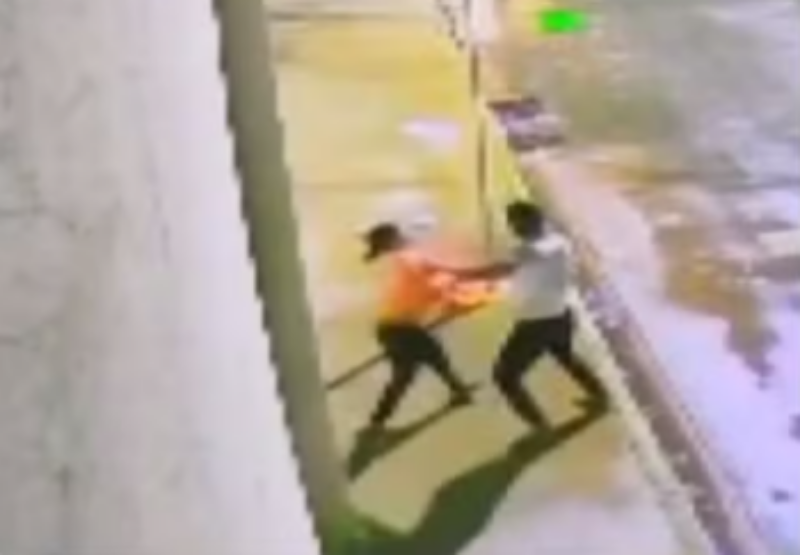 Segundo a PM, mulher teria alegado que marido foi ferido em briga com terceiro, mas imagem de câmera de segurança descartou a versão e mostrou ela desferindo os golpes na noite deste sábado (18).