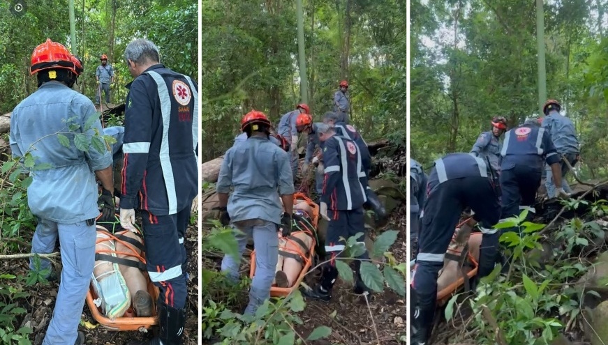 De acordo com as equipes de socorro, a mulher escorregou em uma pedra durante o trajeto e caiu, sofrendo uma lesão no joelho que a impediu de permanecer em pé e seguir caminhando. Por estar em uma área de mata fechada, o acesso ao local foi dificultado, exigindo esforço conjunto e técnicas de resgate específicas para retirá-la com segurança.