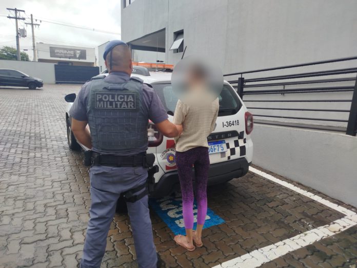 De acordo com a PM, a equipe realizava patrulhamento pelo bairro quando, de posse de um mandado de prisão, localizou e abordou a mulher, de 30 anos. Contra ela havia um mandado judicial pelo crime de roubo (artigo 157 do Código Penal).