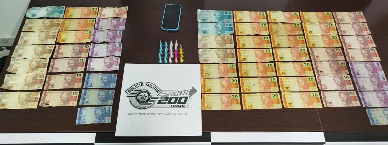 Em revista pessoal, com o indiciado maior, nascido em 12 de janeiro de 2006, foram encontrados 24 eppendorfs de cocaína, totalizando 28 gramas, além de R$ 797,00 em dinheiro. Com o adolescente, nascido em 13 de abril de 2012, foram apreendidos R$ 516,00.