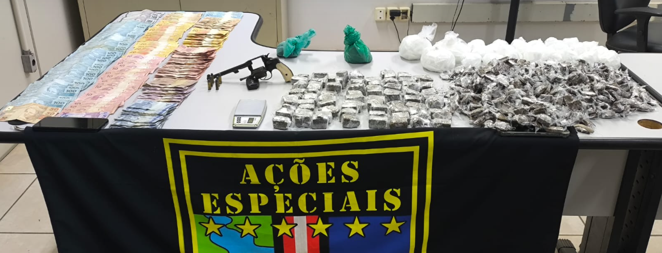 Durante a averiguação, ele informou que havia mais drogas, dinheiro e uma arma de fogo nos fundos do bar. No local indicado, os policiais localizaram um revólver calibre .32, munições e grande quantidade de maconha e cocaína.