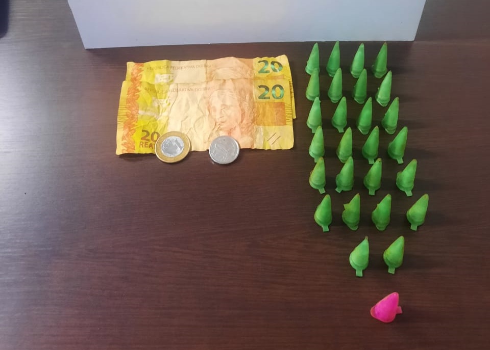Durante a abordagem, os policiais encontraram com ela R$ 41,50 em dinheiro. Em seguida, a equipe verificou o local onde o pacote havia sido jogado e encontrou 27 flaconetes de cocaína, totalizando 26 gramas da droga.