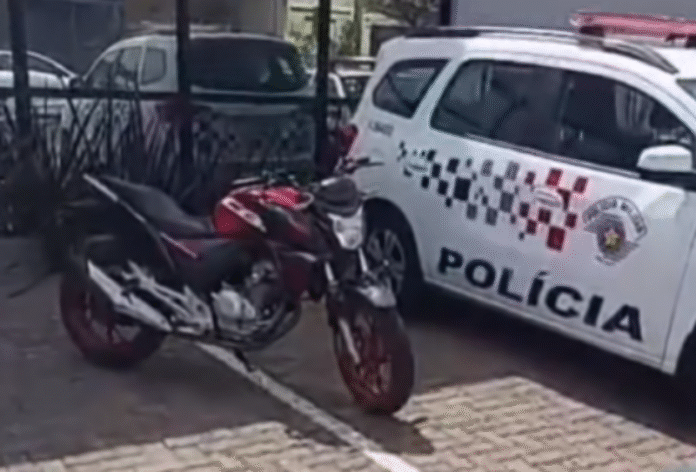 Na manhã desta quinta-feira (4), a Polícia Militar de Leme (SP) deteve duas pessoas – um maior de idade e um adolescente – e recuperou uma motocicleta que havia sido roubada de uma mulher na noite da última terça-feira (2), por volta das 22h, nas proximidades da empresa Ilumi, no Distrito Industrial.