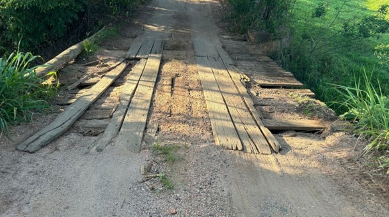 Uma ponte na zona rural, localizada na estrada municipal que liga Leme a Santa Cruz da Conceição (SP), próxima ao Recanto da Colina, está se transformando em um perigo diário para motoristas, ciclistas e trabalhadores rurais que dependem da via. A estrutura de madeira apresenta desgaste avançado, tábuas soltas e pontos de rompimento, deixando evidente o risco iminente de acidentes graves.