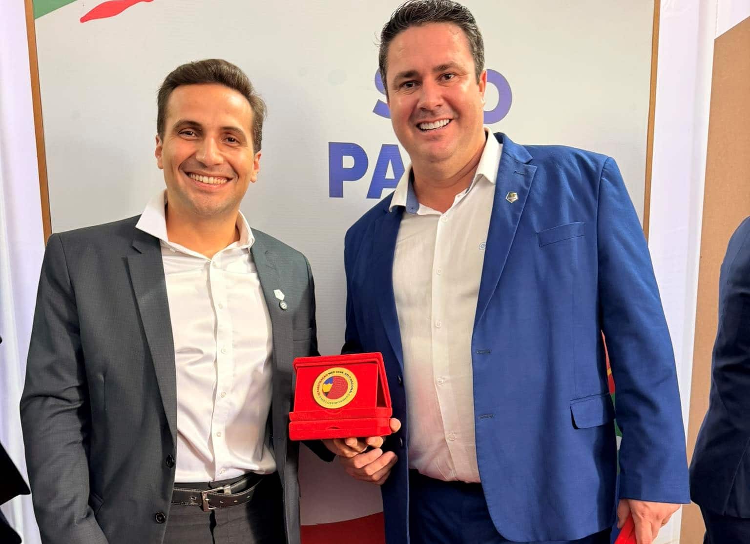 O reconhecimento foi recebido pelo prefeito Claudemir Aparecido Borges, ao lado do secretário de Educação Elias Ferrara.